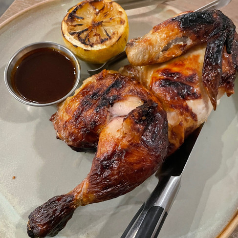 The food was just okay when all was said and done. We decided to get an appetizer which was fresh and tasty. It was a seasonal crostini with fresh strawberries and a balsamic glaze. Each item was individually priced and seemed like a lot of food, so we decided to split a meal- half a roasted chicken and their duck fat potatoes. The chicken had a coffee brine, but didn't really hold that flavor. It was a little on the dry side, but it came with an house jus which helped. I wanted to love the potatoes because anything made with a fat should be delicious, right? Unfortunately, they were greasy and had lots of seasoning. Seasoning wouldn't be a bother, but they were pieces of seasoning instead of powder so they stuck in your teeth. We ended the meal with a sorbet. We were told is was raspberry, but the sorbet was lemon with a mango mochi and some raspberry pieces. Not exactly what we were expecting, but it was tasty and a nice end-of-meal pallet cleanser.