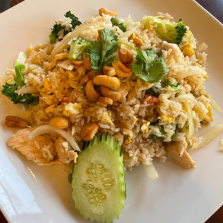They have lots of other great food options to choose from and have sushi on their menu, which we haven't tried. I like to start my meal out with Miso Soup. They don't skimp on the seaweed or tofu. We also like their fresh spring rolls (pictured above, center) with peanut sauce that adds a little bit of crunch and tang. My husband really enjoys their Pineapple Fried Rice (pictured above, far right). It's a good balance of sweet and savory. On their 1-5 scale, he usually gets a 3 which is fairly spicy for most. Most of the servings are enough for us to save some for lunch the next day, especially if we get an appetizer to start.